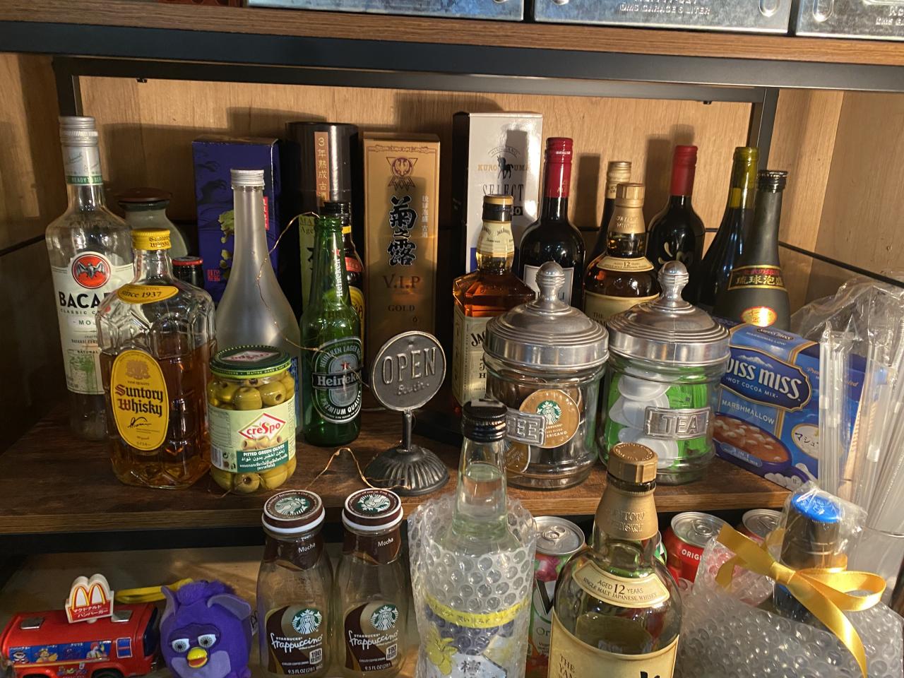 画像のように飾ってセルフサービスで好きなお酒を注いで楽しく男だけの飲み会!笑