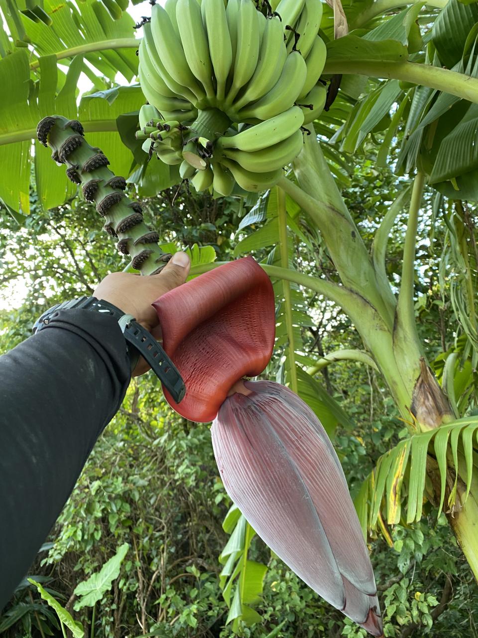 バナナの花を切って実になっているところに栄養を与えながら、いい大きさになるまで待ちます!!